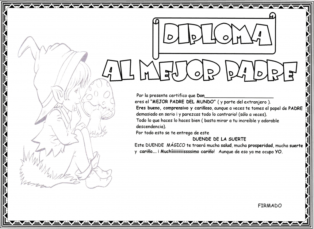 Tres sencillos diplomas para colorear, el primero nos lo remite Maika desde Sevilla que ha realizado para el día del padre. El tercero de ellos no llevan dibujo para que lo realice el niño o niña.
