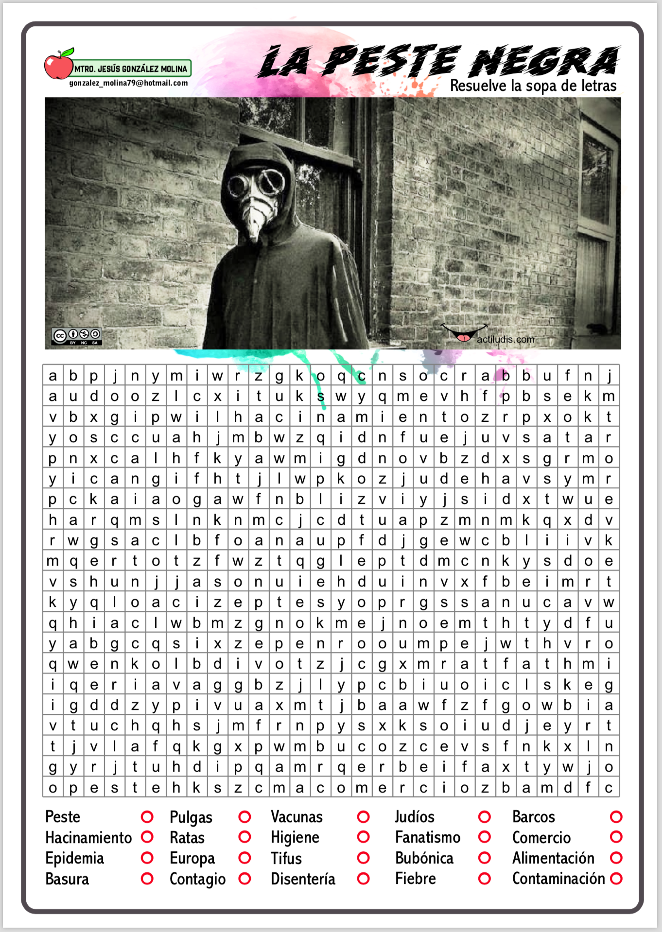 Actividad realizada por el profesor Jesús González Molina de la Escuela Primaria Vicente Guerrero y catedrático en el nivel de posgrados, desde Los Placeres del Oro, en el estado de Guerrero, México, con la que trabajar el campo semántico relacionado con la peste negra