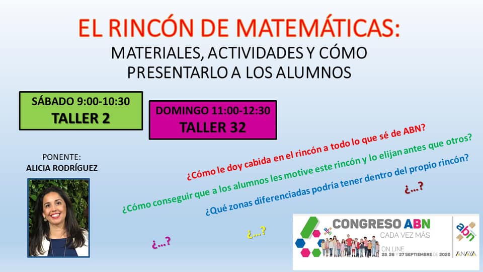TALLER 2 EL RINCÓN DE MATEMÁTICAS: MATERIALES, ACTIVIDADES Y CÓMO PRESENTARLO A LOS ALUMNOS. ALICIA RODRÍGUEZ
