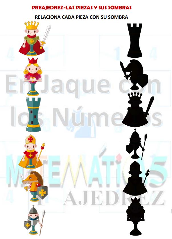 Actividad de preajedrez: Relaciona cada pieza con su sombra