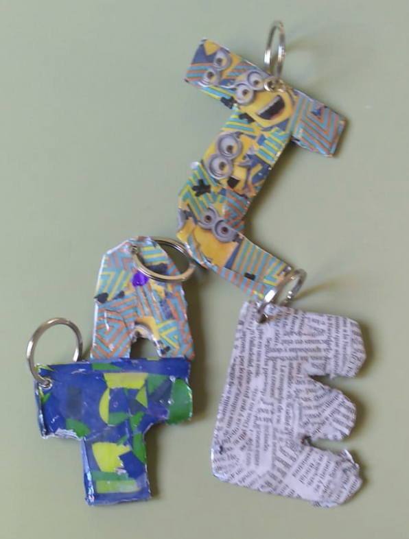 Se trata de unos llaveros bastante resultones y muy baratitos ( de material reciclado) para regalarlos a sus padres el próximo día 19 de Marzo.