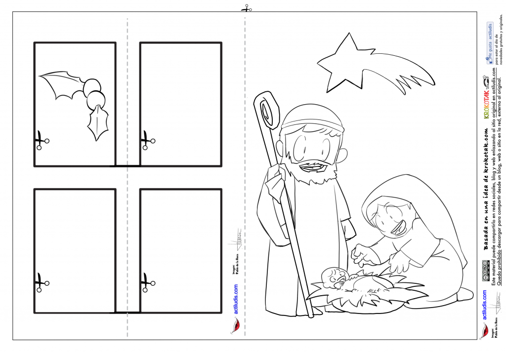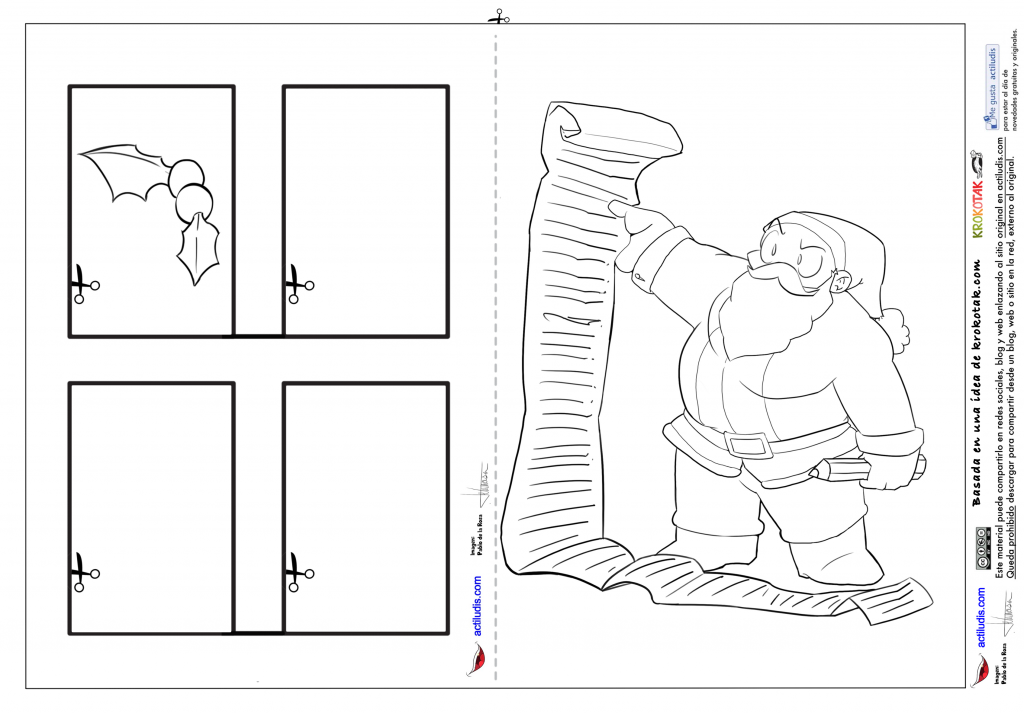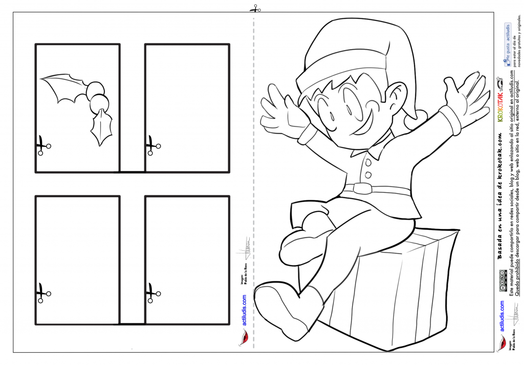 Además de invitaros a visitar la página y descargar las postales que han preparado, en este artículo podrás ver el montaje sencillo que tienen las postales. Se trata de una ventana que deja mostrar el interior de la postal, que en nuestro caso hemos decorado con los dibujos de Pablo de la Rosa, en cada uno de ellos la Sagrada Familia, Papá Noél y un Elfo.