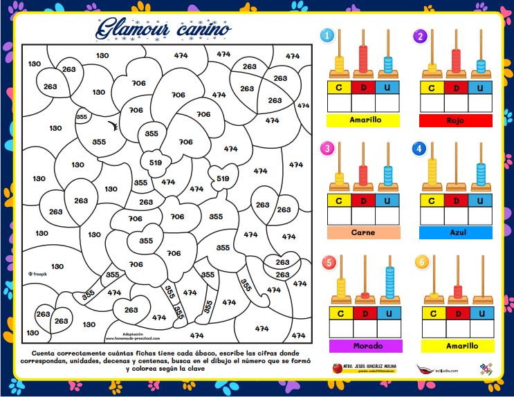 Jesús González Molina nos comparte un nuevo material en el que hay un dibujo oculto. Consiste en trabajar varias actividades relacionadas con el cambio de unidades, decenas y centenas para así descubrir una serie de claves con las que encontrar el dibujo oculto.