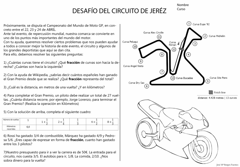 El desafío que nos envía José Mª Burgos Fuentes, CEIP «Alfonso X el Sabio» de Arcos de la Frontera (Cádiz) está destinado al Tercer Ciclo de Primaria y en el se trabajan diferentes contenidos matemáticos sobre longitud, fracciones, resolución de problemas, cálculo monetario y búsqueda de información.