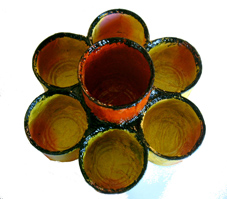 1.- Pega las latas iguales alrededor de la que hayas elegido diferente, utiliza para ello pegamento de contacto de los que están espesos para evitar que se escurra. Déjalo unas 24 horas secar.