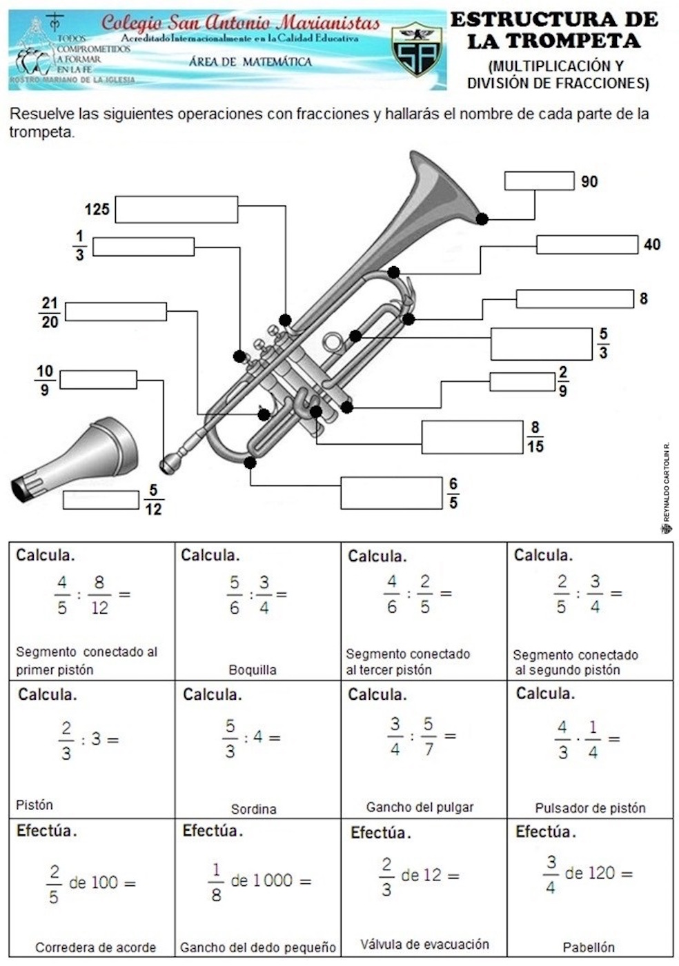 La siguiente ficha nos la envía Reynaldo Oswaldo Cartolín Rosado Profesor de Matemática – Física desde el Colegio San Antonio Marianistas del Callao, Lima (Perú), y en ella se trabaja el producto (fracción de un número) y la división de fracciones.