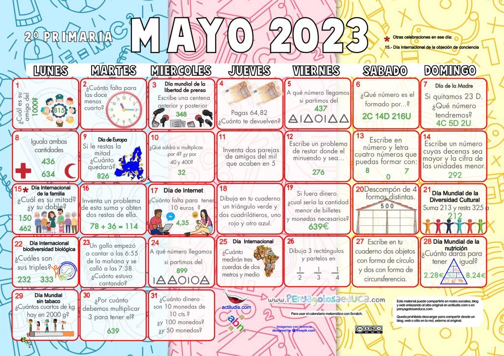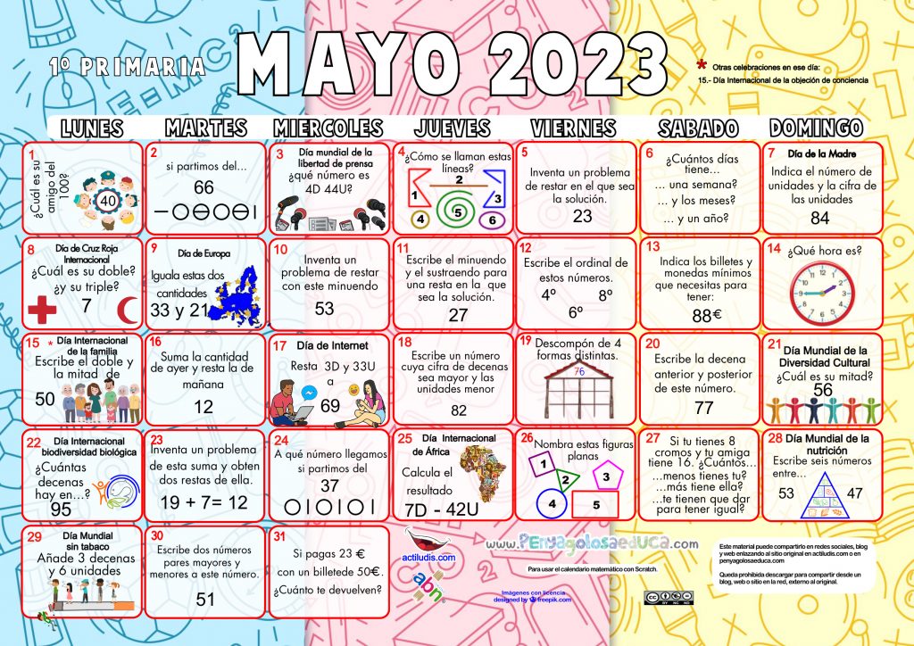 Calendario matemático para el Primer Ciclo de Primaria. MAYO 2023