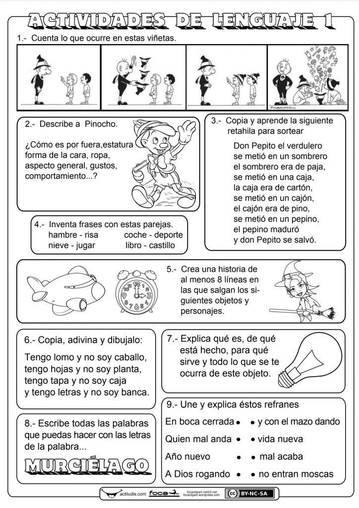 Estas fichas las uso para trabajar diariamente en la libreta y contiene actividades en las que se trabajan varios habilidades lecto escritoras como: inventar historias dadas unas palabras, viñetas, …, aprender retahílas, adivinanzas, poesías, descripciones de personas y objetos, inventar historias, crear frases, crear palabras, emparejar y descifrar refranes…