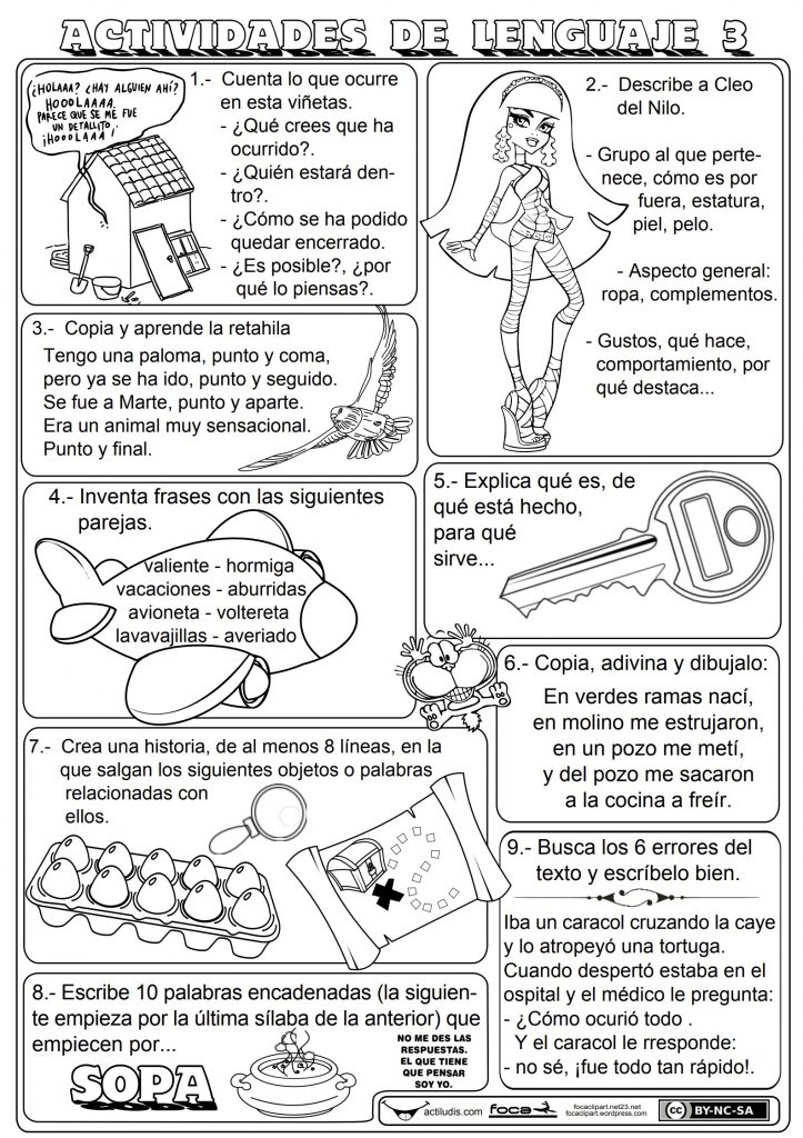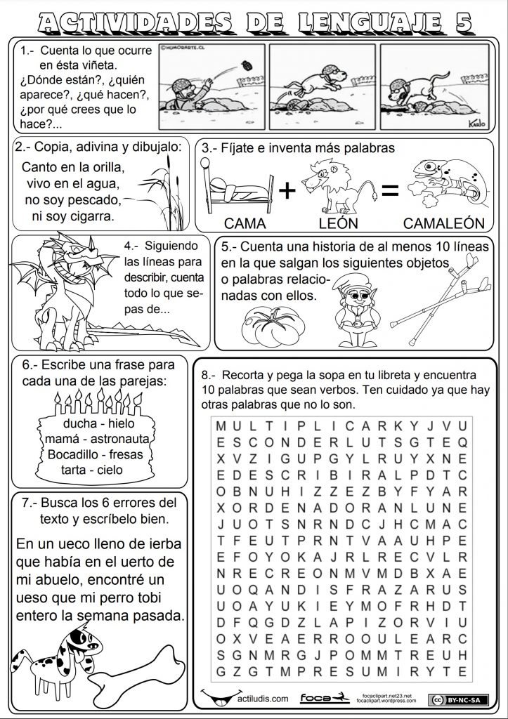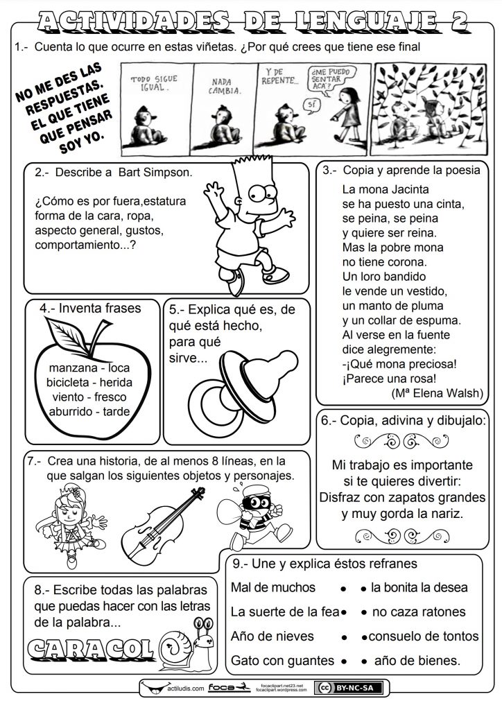 En este artículo dejo 5 fichas para trabajar la expresión escrita que pueden ser usadas en el Primer Ciclo (2º curso) como en el Segundo Ciclo, ya que las actividades permiten varios niveles de profundidad según la edad y nivel de los alumnos.