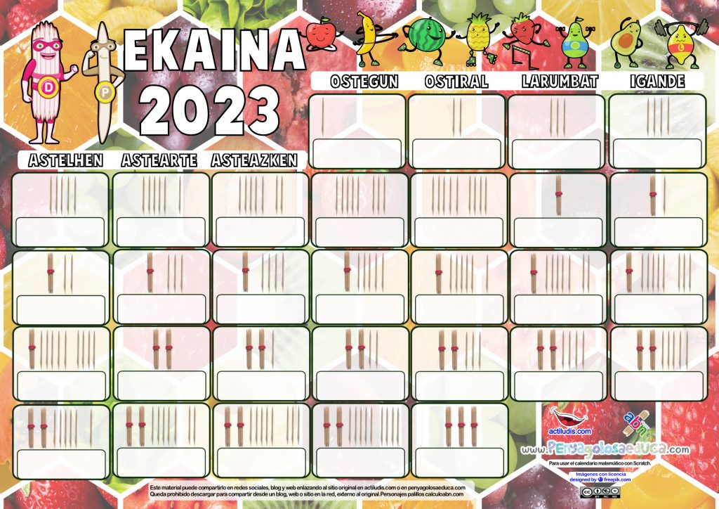También os animamos a que dejéis sugerencias a través de los comentarios sobre más usos de este tipo de calendario. El calendario lo ofrecemos en las lenguas cooficiales del estado, en inglés y con el comienzo de la semana en lunes.