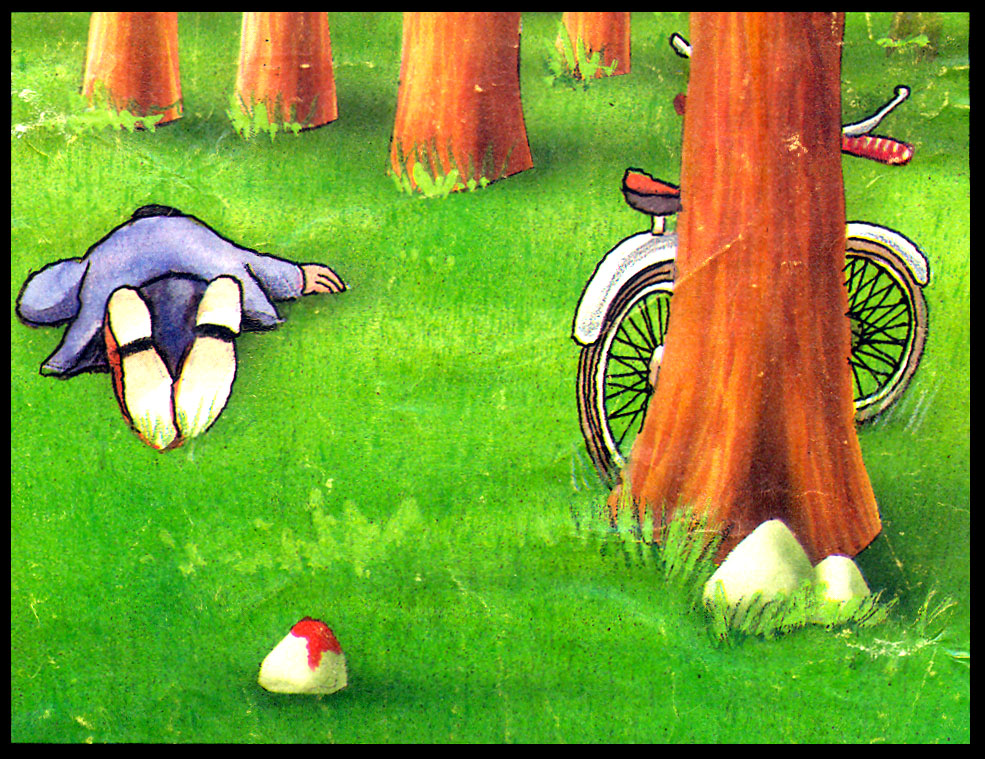 Una hora más tarde fue encontrado en el bosque, junto a la bicicleta, asesina- do por uno de sus primos, pero lo curioso es que ambas se acusaban mutuamente declarando que habían sido testigos oculares del asesinato. Miguel declaró que mientras paseaba escuchó voces cercanas y al apartar unas ramas vio a cierta distancia a sus primos, de pie, dialogando. Se proponía acercarse hacia ellos cuando vio a Alberto que golpeaba a Juan con una piedra que tenía en la mano, mortalmente herido, Juan se derrumbó en el suelo. Decidió alejarse del lugar guardando silencio sobre lo que había visto.
