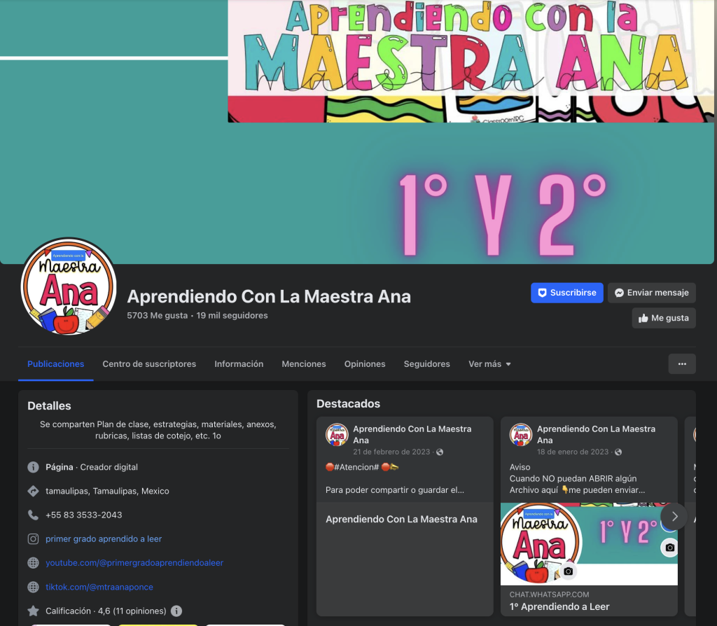 Este es el caso de «Aprendiendo con la maestra Ana» de la que aquí tenéis la carátulal y logo de su facebook.