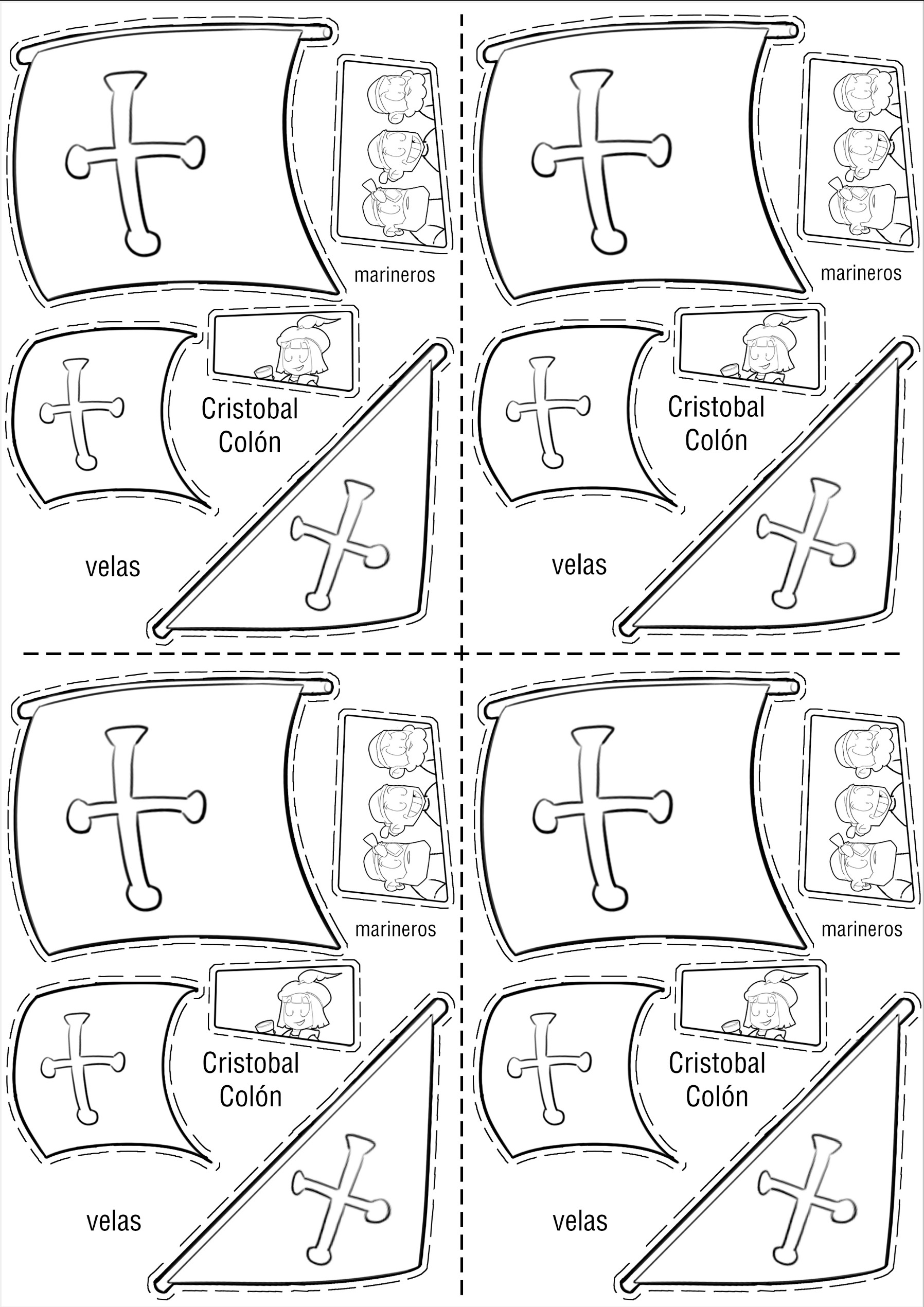 Actividad de manualidad que incluye, recortar, colorear y pegar para montar la carabela «Santa María» en la celebración del día de la Hispanidad o día de la «Raza» el día 12 de octubre.