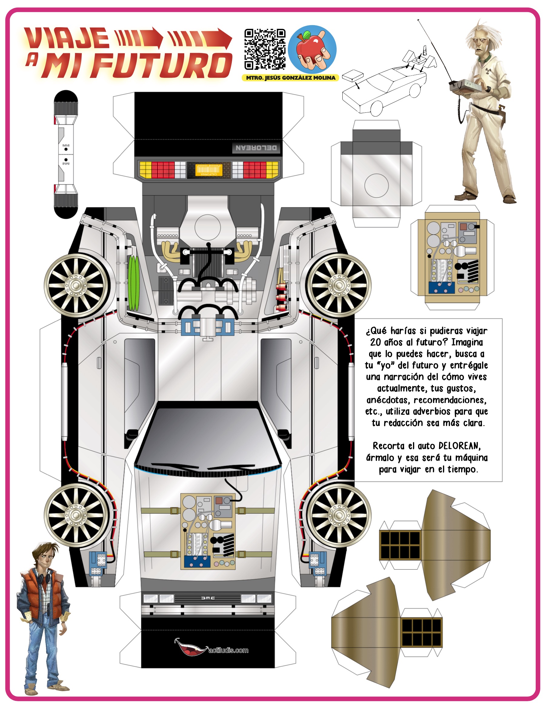 Recorta el auto DeLorean, ármalo y esa será tu máquina para viajar en el tiempo.