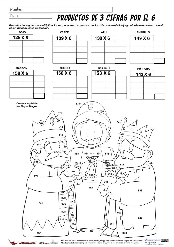 Cada producto tiene asignado un color que es con el que deberán colorear el resultado que aparece repartido en el dibujo de sus altezas reales los Reyes Magos de oriente.