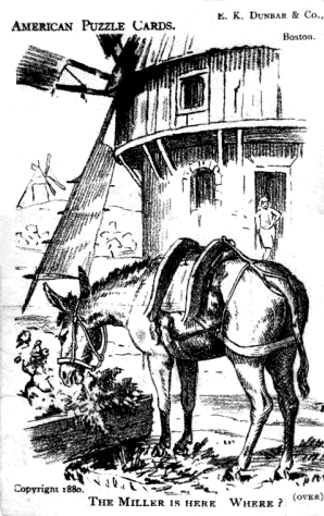 Del mismo autor, E. K. Dunbar, de la lámina para encontrar al pretendiente, os dejo la siguiente en la que hay que encontrar al molinero, en concreto la cara del molinero y dueño del burro, ya que el que está en la puerta del molino es muy evidente. Como ayuda …