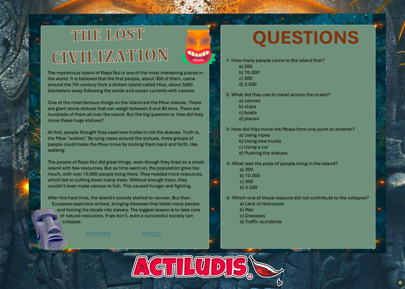 Hoy les traemos una nueva edición de nuestras lecturas cortas en inglés, ideales para trabajar con los alumnos. En esta ocasión, presentamos «The Lost Civilization», un fascinante texto que explora la enigmática historia de la isla de Rapa Nui y sus icónicos Moai. Hemos actualizado el contenido para incluir enlaces …