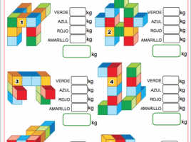 Con la siguiente ficha buscamos reforzar el aprendizaje de la suma de fracciones de cuartos, medios y tres cuartos, muy usuales en las medidas de masa, longitud y capacidad. Para ello hemos montado una actividad en la que se les pide al alumnado que averigüen el peso de varias piezas …