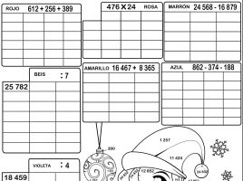 Operaciones variadas hasta la decenas de millar. Incluye también operaciones de sumas de tres sumanos y doble restas. Cada operación tiene asignado un color, cuyo resultado podrén en contrar en el dibujo y aplicar dicho color en todos los resultados iguales. DESCARGAR: «OPERACIONES CON MILLARES» SOLUCIÓN Este contenido se publicó …