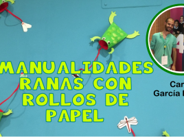 Manualidad super sencilla dirigida a los más pequeños de Primaria. Pintamos un rollo de papel higiénico de verde, coloreamos y recortamos dos pares de ancas de rana para pegar en el rollo de cartón y ya sólo nos faltan dos pequeños, pero importantes detalles: los ojos saltones de nuestra rana …