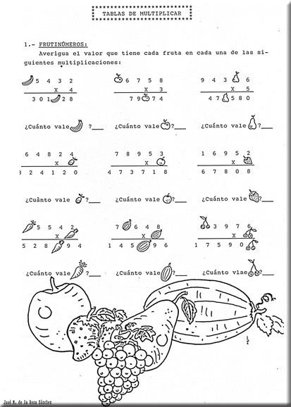 Tu estás aquí: Inicio › Multiplicaciones de 1 dígito por varias cifras I › Multiplicaciones, con números escondidos, sin llevar de 1 cifra por varias Multiplicaciones, con números escondidos, sin llevar de 1 cifra por varias Deja una respuestaTu dirección de correo electrónico no será publicada. Los campos obligatorios están marcados con *Comentario * Nombre * Correo electrónico * Web Recibir un correo electrónico con cada nueva entrada. Δ