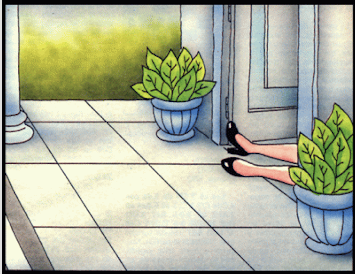 - SOLUCIÓN: Si hubiera sucedido como contó el jardinero, el porche debería estar lleno de barro de las pisadas del perro, ya que tuvo que llegar allí atravesando la extensión de tierra rojiza que por la lluvia estaba embarrada.