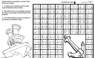 Con esta ficha trabajamos 18 parejas de fracciones con el numerador o el denominador igual, al objeto de ir señalando las que cumplan la condición de ser > o <. Las soluciones al final del artículo. DESCARGAR: «COMPARACIÓN DE FRACCIONES«