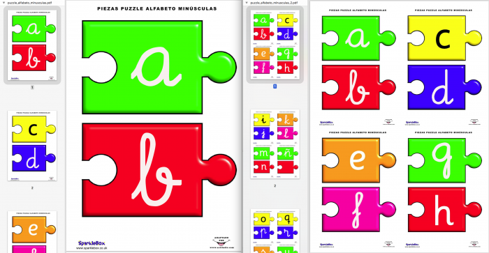 A partir de un fichero de piezas de un puzzle encontrado en sparklebox preparé unos nuevos adaptando algunos aspectos con las siguientes características: – La idea es la misma, piezas de un puzzle con el abecedario. – Las letras las he cambiado por la tipografía Montessori, que es la habitual … Sigue leyendo Puzzles del abecedario en minúscula