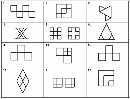 Las siguientes figuras geométricas están hechas usando solo palillos de igual tamaño. Sigue las instrucciones en cada caso y haz uso de tu astucia y de tus conocimientos en geometría para resolver satisfactoriamente los acertijos propuestos.