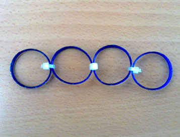2.- Une las anillas con las bridas, de dos en dos, procurando que la cabeza quede siempre hacia un mismo lado. Puedes hacerlo por filas o grupos.
