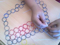 1.- Diseña tu bolso con la forma, colores y número de anillas que quieras que tenga, al objeto de contar con todas las que vas a necesitar y poder cambiar con los compañeros las que os interesen a cada uno.