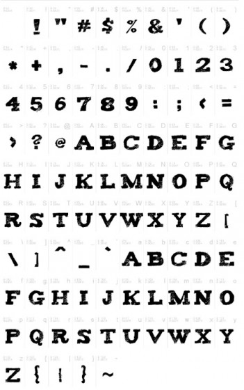Los caracteres de la fuente los puedes ver a continuación. Se hecha de menos la existencia de minúsculas y para lograr el color blanco selecciona previamente dicho color antes de escribir sobre un fondo oscuro.