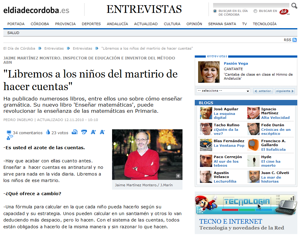 La semana pasada se presentó el libro “Enseñar matemáticas a alumnos con necesidades educativas especiales” de Jaime Martinez Montero y al día siguiente salió en varios periódicos de la cadena Joly que os dejamos abajo.