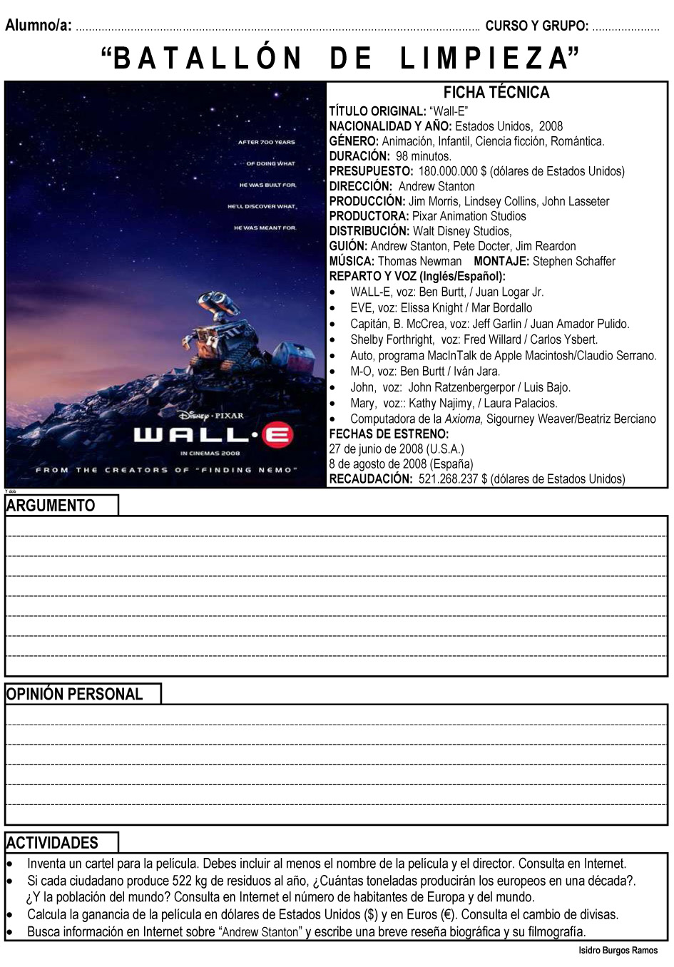 Tu estás aquí: Inicio › El cine como recurso didáctico › WALLE-E WALLE-E Deja una respuestaTu dirección de correo electrónico no será publicada. Los campos obligatorios están marcados con *Comentario * Nombre * Correo electrónico * Web Recibir un correo electrónico con cada nueva entrada. Δ
