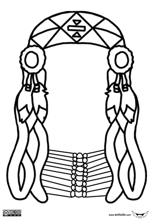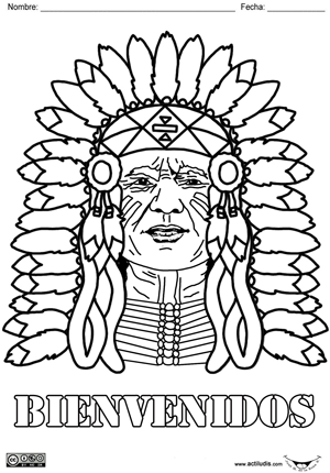El mural se ha preparado en un tamaño único a 2×4 (la unidad son folios A4 en horizontal) que hay que montar, ayudado por las guias. El penacho indio se ha preparado en dos modelos, con y sin cara y todos los archivos están en pdf. Al final también hay un dibujo para colorear con el motivo del mural.