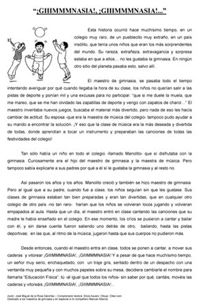 Esta historia ocurrió hace muchísimo tiempo, en un colegio muy raro, de un pueblecito muy extraño, en un país insólito, que tenía unos niños que eran los más sorprendentes del mundo. Su rareza, extrañeza, extravagancia y sorpresa estaba en que a ellos… no les gustaba la gimnasia. En ningún otro sitio del planeta pasaba esto, salvo allí.