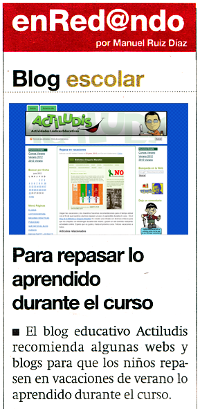 Esta mañana desayunando me encontré con una inesperada y grata sorpresa al ver, al blog, en la sección de Manuel Ruíz Díaz «enReda@ndo» del «diario Córdoba» recomendado para repasar lo aprendido durante el curso.