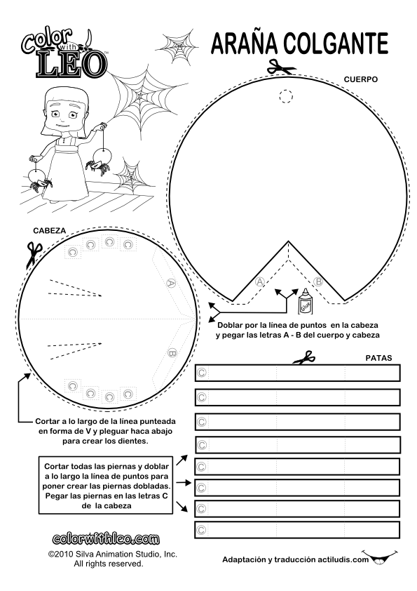 El original de este Recortable lo encontré en la página colorwithleo.com donde puedes encontrar el original. Puede usarse como manualidad o para celebrar Halloween El que dejo aquí está traducido y he aumentado proporcionalmente el tamaño de las piezas.