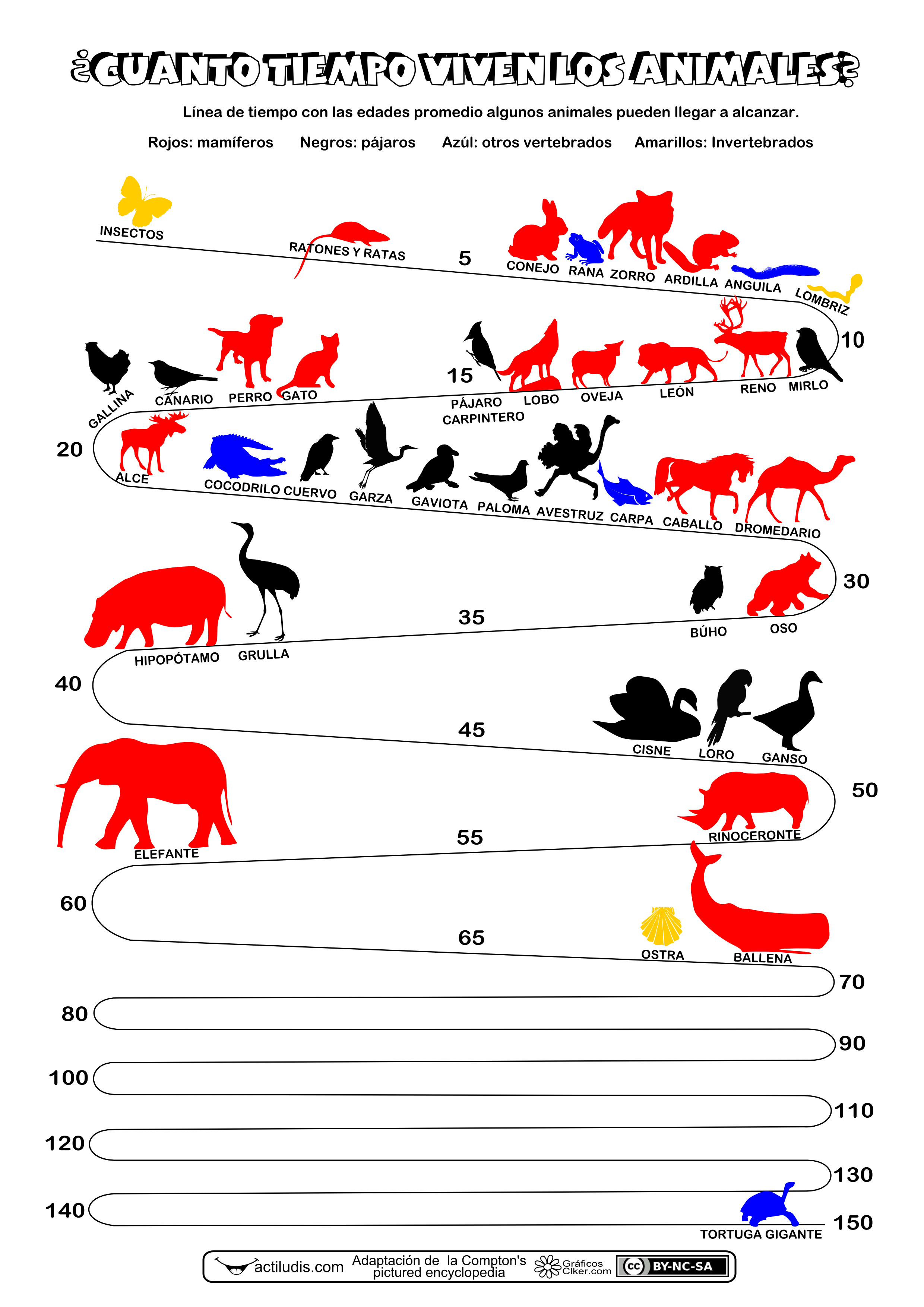 Basándome en un Isotipo (Sistema Internacional de Educación Tipográfico con Imágenes- Siglas en inglés) sobre «¿Cuánto tiempo viven lo animales?» realizado en la década de los 30 por «Compton’s pictured encyclopedia», he preparado varias actividades para realizar ejercicios de conocimiento del medio y matemáticas a partir de los datos de la vida que pueden llegar a vivir los animales representados y dirigidas al Primer Ciclo de Primaria, pero que puedes adaptar con nuevas preguntas del tipo que se muestran.