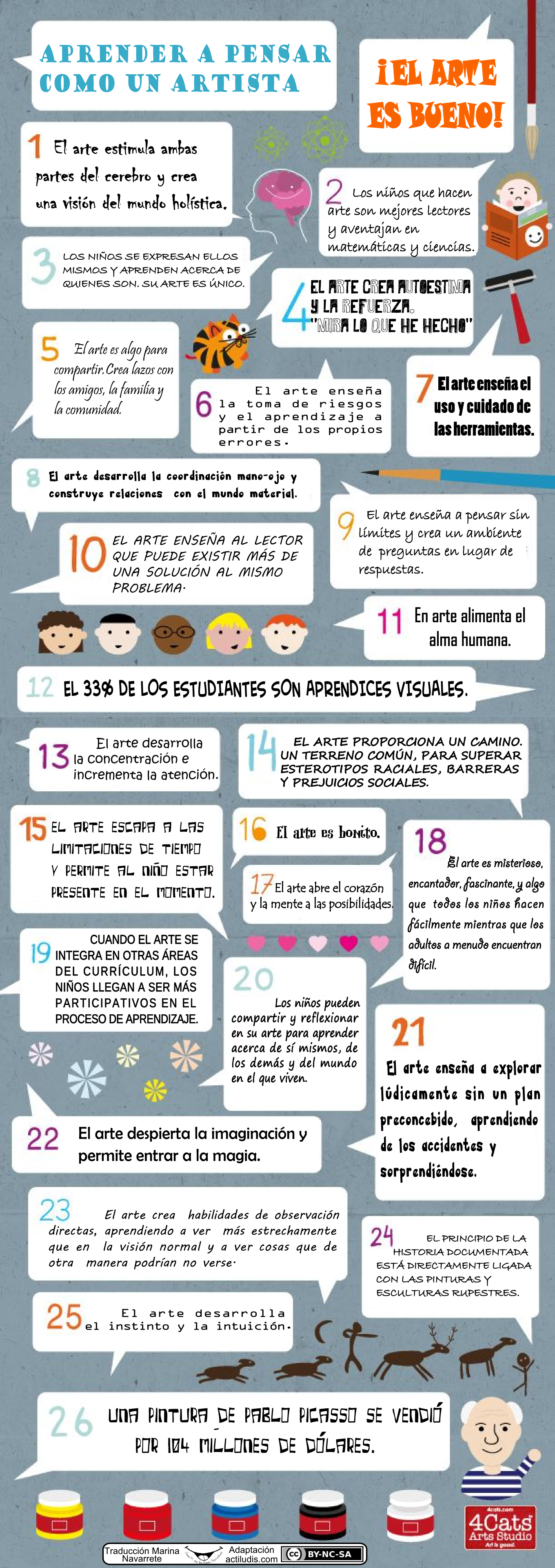 Si te gusta la educación plástica, te gustará esta infografía cuyo título original es «Learn to think like an artist«, elaborada por «4Cats Arts Studio» y que he preparado en castellano gracias a la colaboración de Marina Navarrete. El fichero está en PDF, si lo deseas en JPG haz clic aquí,