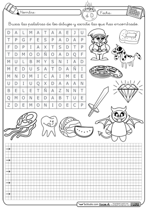 – Sopa de letras con los dibujos de las palabras que deben buscar y espacio para escribirlas.