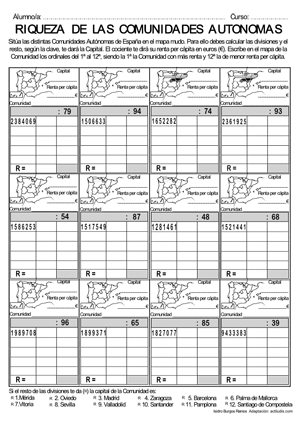 En las siguientes actividades para dividir se trabajan conceptos relacionados con las comunidades autónomas, lo cual puede venir bien para trabajar los días que dedicamos a la Constitución.
