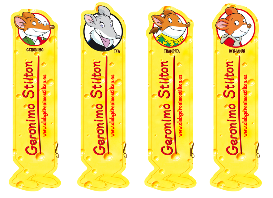 Desde el club de Gerónimo Stiltón puedes descargarte este marca páginas del famoso ratón. También le hemos quitado el color y lo tienes a tu disposición debajo.