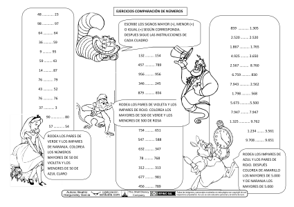 Ficha realizada por Beatriz Harguindey García de Rianxo (A Coruña), también desponible en gallego, para trabajar la comparación de números en mayor, menor o igual y distinguir entre pares e impares.
