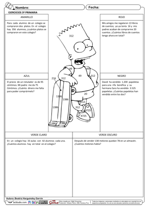Beatriz Harguindey García de Rianxo (A Coruña) nos envía nuevas fichas con ejercicios de problemas variados con nivel de dificultad de 2º y 3º de Primaria. Se pueden resolver mediante el algoritmo tradicional o el algoritmo ABN, si necesitas la cuadrícula ABN para los ejercicios que no la tienen puedes descargarla desde aquí.