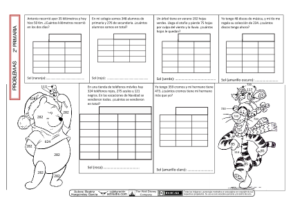 La siguiente ficha contiene problemas de todas la tipología existente para alumnos de 2º de Primaria, demás tiene un grado de dificultad añadido por lo cual los hace también adecuados para 3º de Primaria, ya que son operaciones de números de tres cifras.