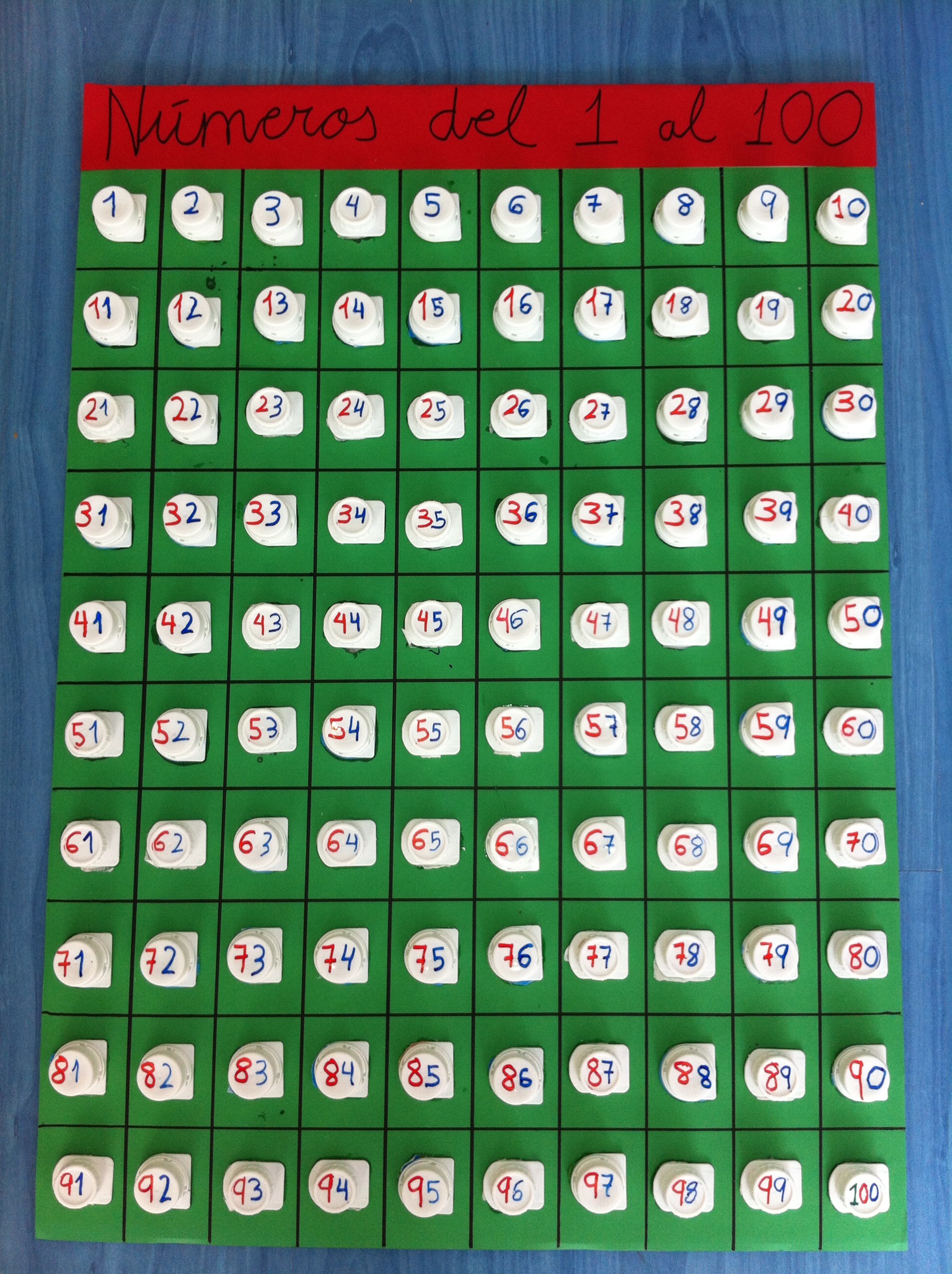Nueva colaboración en el blog, en ésta ocasión se trata de Juan Antonio Durán Siles del C.R.A. «Riscos de Villavieja» en Barrado (Cáceres) maestro del Primer Ciclo con alumnos de 1º y 2º de Primaria, nos remite una nueva utilidad para la máquina de los tapones, adaptándola con números del 1al 100. Esta hecho con un cartón pluma,cartulinas para darle color y tapones de leche. De esta forma podemos trabajar en clase la numeración, el orden de los números,número anterior y posterior….Los chic@s se lo pasan muy bien porque es muy manipulativo ya que son ell@s mism@s lo que van colocando los números enrocándolos en su lugar correcto.