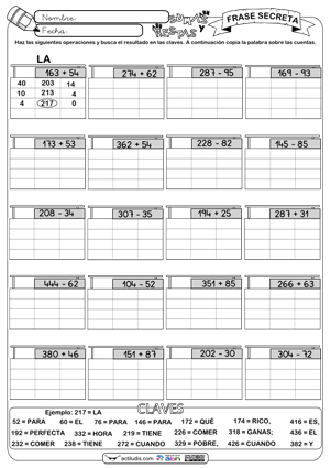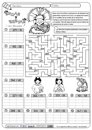 Sumas y restas de 3 y 2 cifras «con llevadas»