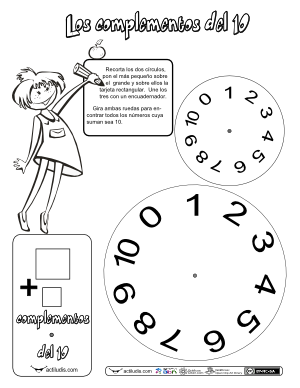 Dos ruedas para superponer y calcular los complementos del 10. Idea basada en una similar vista en «Practical Pages» vía «Aula Pt«. Si realizas las fotocopias en cartulina de colores, luego puedes combinar una rueda de un color y otra de otro, con lo cual el contraste en mayor.