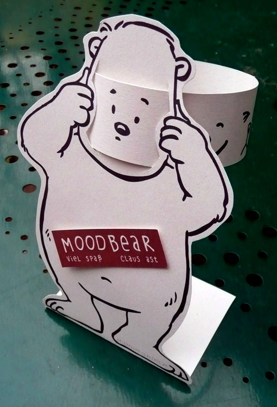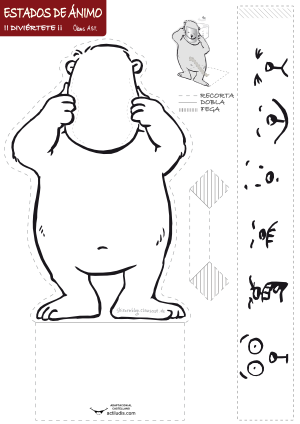 En el blog alemán de Claus Rama he encontrado esta actividad que he traducido al castellano. Se trata de una manualidad de un oso al qeu le podemos cambiar el estado de ánimo de su cara haciendo girar una cinta de papel que introducimos en su cara, tal y como se ve en la imagen. Se recomienda imprimir sobre cartulina para darle consistencia una vez montado.